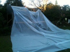 I stretched the plastic on bit by bit. I prefer to work completely alone.. So sometimes you have to be creative, especially with big or clumsy things.