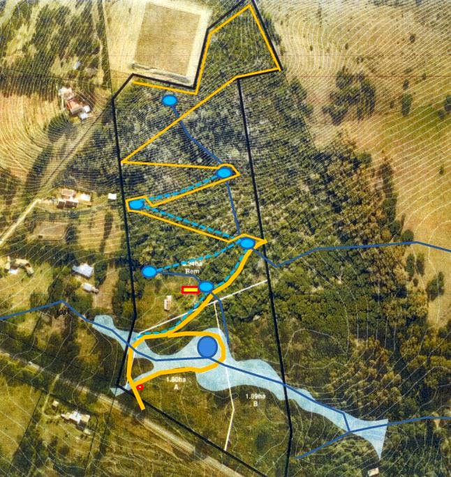 | Yellow rectangle is new house position. Yellow lines access. Blue lines water |