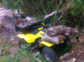 | 160 cc Susuki Quadrunner helping out with some fence poles. |