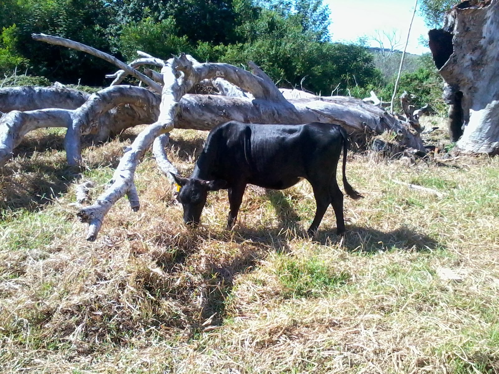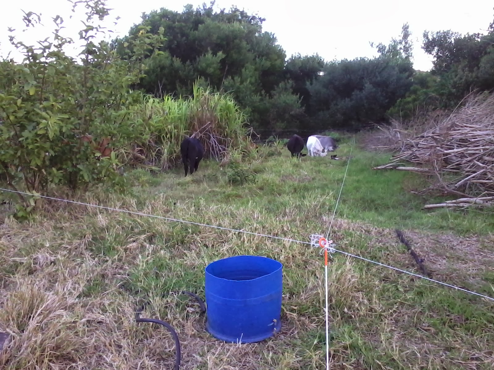 The cattle have kept inside of camp “B” this week. The strand of electric fence around the camp seems to be enough to stop them wandering off into the forest. But the good grazing is all gone. They like the grass, not so much the bramble and he other shrubs and trees. (the trees they like are the Port Jackson and Keurboom)