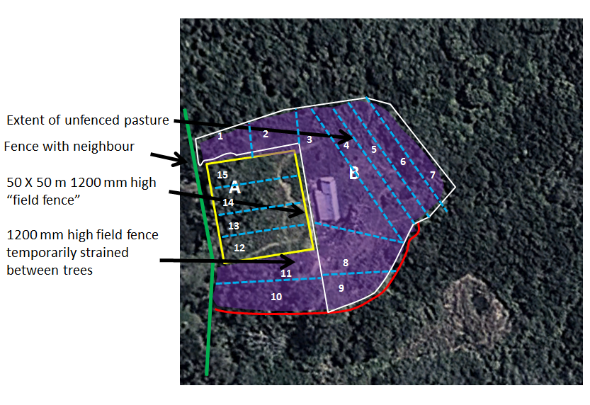 Step 3 – 15 different strips can then be created using temporary electric fence.