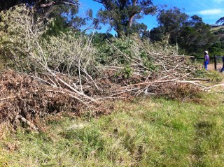 After this exhausting journey we got the trailer as close as we could to the new padock (but this was still the other side of the stream) We let them off the trailer and they scattered in all directions. If Litha was not here I dont know what I would have done. But we eventually got them herded together and moving slowly in the direction of the padock into which we managed to secure them. I was exhausted by the time I got home and a bit shaken by the experience. The next morning, Sunday, Litha and I drove to the farm. All nine seemed quite restful. Some were mooing for their mothers (even though they were quite a bit over 12 months old they had not been weaned at Tsitsikama) All seemed fine, but when I cam back on Sunday afternoon, I found the whole herd out. I was alone. I ran round like crazy at first trying to direct them back, but the were determined to get away from the padock. I called my neighbour Richard. Luckily he was in he and a friend came to help. We go them in and I spent the rest of the evening trying to make the fences more secure. But the more I tried the more I could see that two black cattle were absolutely determined to escape they pushed at the fences and then over they went. By this time it was bout 8 pm. I called Litha and Hlubi. I stayed by the fence that had just been jumped to be sure the others would not also come out. They did not and eventually the family arrived and herd to two black cattle back from the tar road where they had got to so that I could get them back in the paddock.